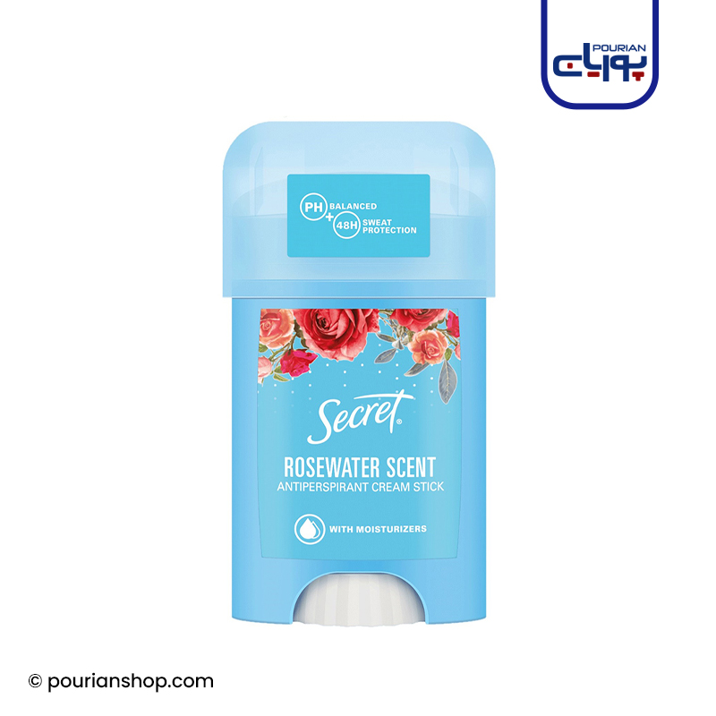 استیک ضدتعریق کرمی سکرت رایحه گل رز Secret Rosewater دارای فناوری پیشرفته جهت خنثی سازی ۴۸ ساعته بو و عرق توسط فرمول کرم رطوبت رسان است. استیک ضدتعریق سکرت دارای pH متعادل با پوست است و بلافاصله پس از استفاده جذب شده و اثری از خود بر جای نمی گذارد، این فرمول به همراه رایحه گلاب به خوبی کمک می کند تا در طول روز پوستی نرم و خوشبو داشته باشیم.