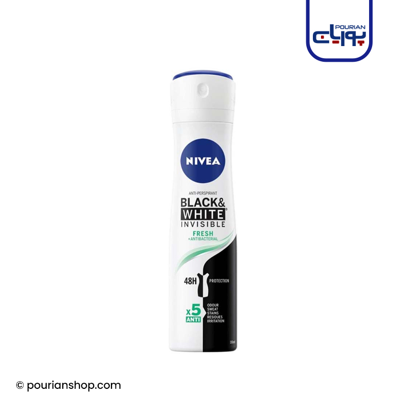 اسپری زنانه نیوا مدل Invisible fresh mist برای لباس های سیاه و سفید دارای فرمول تثبیت شده و منحصربفرد ضدلکه نیوآ، به صورت ۴۸ ساعته و بدون وقفه شما را در برابر عرق و لباسهای شما را در برابر لکه های سفید روی لباسهای سیاه و لکههای زرد روی لباسهای سفید محافظت میکند. فرمول این محصول روی پوست باقی نمیماند و رایحه تازه و ناب طولانی مدتی را تضمین میکند.