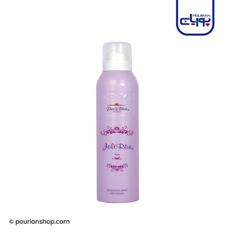اسپری زنانه Joli Reve پاریس بلو حاوی درصد زیادی پرفیوم خالص میباشد که باعث وضوح بسیار بالای عطر و ماندگاری بسیار زیاد این اسپری میگردد. به هیچ عنوان هنگام استفاده بوی گاز اضافه استشمام نمیشود. این اسپری ساخت کشور فرانسه میباشد و تا آخرین لحظه ماندگاری کیفیت و وضوح اولیه بوی آن حفظ می شود. اسپری زنانه Joli Reve پاریس بلو در ابتدا با بوی نارنج، لیمو، پرتقال ماندارین و گل گاردنیا شروع می شود به مشام شنونده می رسد و در نت میانی عناصری همچون بوی گل یاسمین، گل پیچ امین الدوله، گل صدتومانی، گلابی و طالبی شنونده را پای بند خود می کند و در انتهای مسیر بویایی خود با پخش رایحه ترکیبی از نت هایی همچون رایحه بوی مشک، گل بنفشه، عنبر و نت های چوبی این اثر شگفت انگیز با ثبات و ماندگار می سازد.