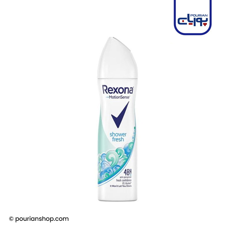 اسپری ضد تعریق زنانه رکسونا شاور فرش Rexona Shower Fresh با عطر و بوی گلهای تازه مخصوص بانوان است. این اسپری با داشتن ترکیبات ضدتعریق و بدون الکل، میتواند تا 48 ساعت از بدن در برابر بوی نامطبوع عرق محافظت کند.