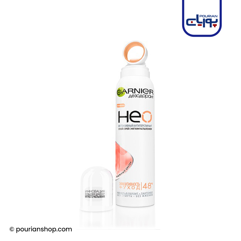 اسپری ضد تعریق نئو گارنیر دارای فرمولاسیون بسیار ملایم و موثر در کنترل تعریق می باشد . این محصول ۴۸ ساعت از ایجاد رطوبت و تعریق در ناحیه زیر بغل جلوگیری کرده و به دلیل داشتن رایحه های بسیار خوش بو از ایجاد بوی بد نیز جلوگیری می کند . تمامی فرمولاسیون این محصول را مواد معدنی طبیعی تشکیل می دهند و فاقد ماده حساسیت زای الکل است . اسپری نئو گارنیر از ایجاد حساسیت و قرمز شدن در ناحیه زیر بغل جلوگیری کرده و بعد از اصلاح به عنوان یک افتر شیو بسیار ملایم عمل می کند . سری اسپری کننده حلقه ای این محصول که نقطه قوط آن نیز می باشد بسیار ویژه بوده و در داخل آن ۱۰ نقطه اسپری کننده وجود دارد که مواد ضد تعریق را به صورت مه و ذرات بسیار کوچک اسپری کرده و محیطی خشک و بدون تعریق را ایجاد می کند . در صورت استفاده مداوم از این محصول تیرگی های ناحیه زیر بغل برطرف شده و پوستی صاف و روشن به وجود خواهد آمد . در کل این محصول یکی از بهترین ضد تعریق های دنیا به شمار رفته و استفاده کردن از آن را برای خانم ها و آقایان در تمامی سنین پیشنهاد می کنیم .