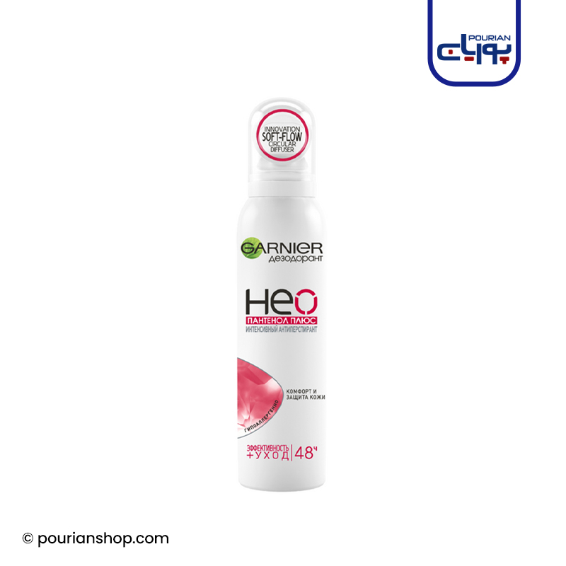 اسپری ضدتعریق گارنیه نئو Garnier Neo Panthenol Plus محصولی باکیفیت، جدید و نوآورانه از برند گارنیه می باشد. اسپری ضدتعریق نئو همزمان بر روی پوست بسیار لطیف است و در مقابل عرق بسیار قوی و مقاوم. اسپری نئو غنی شده با مواد معدنی به عنوان جاذب قوی برای محافظت کامل در برابر رطوبت و بوی نامطبوع به مدت ۴۸ ساعت بوده و علاوه بر این با فرمولاسیون بدون الکل و تسکین دهندگی مضاعف، حس راحتی و آسودگی پس از اصلاح را به ارمغان می آورد.