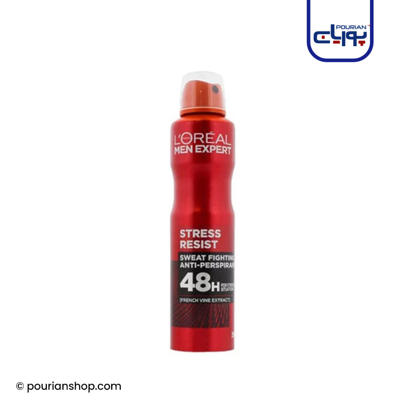 اسپری ضد تعریق مردانه لورال سری Men Expert مدل Stress Resist با فرمول ضد عرق جدید برای مبارزه با استرس و عرق با حفاظت 48 ساعته.