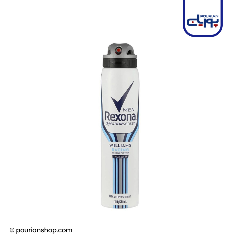 سپری ضد تعریق مردانه رکسونا مدل Williams racing با رایحه مرکبات و گیاهان معطر حس تازگی و خشکی ۴۸ ساعته را ارائه می دهد. این مدل اسپری رکسونا دارای توزیع محدود می باشد.