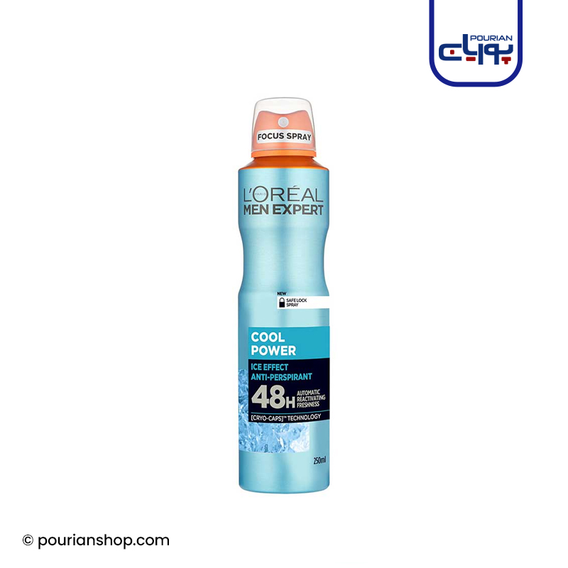 اسپری ضد تعریق مردانه لورال مدل Cool Power کول پاور با ماندگاری ۴۸ ساعته از ایجاد لک زرد و سفید بر روی لباسهای روشن و تیره جلوگیری میکند و با رایحهی چوب و نعنا می باشد و همچنین دارای تکنولوژی سرما درمانی جهت خنک کردن زیر بغل می باشد و موجب ایجاد خیسی و رطوبت بر روی پوست نمی شود.