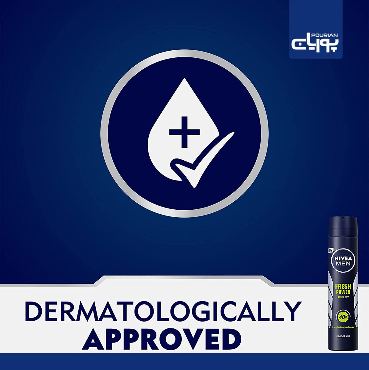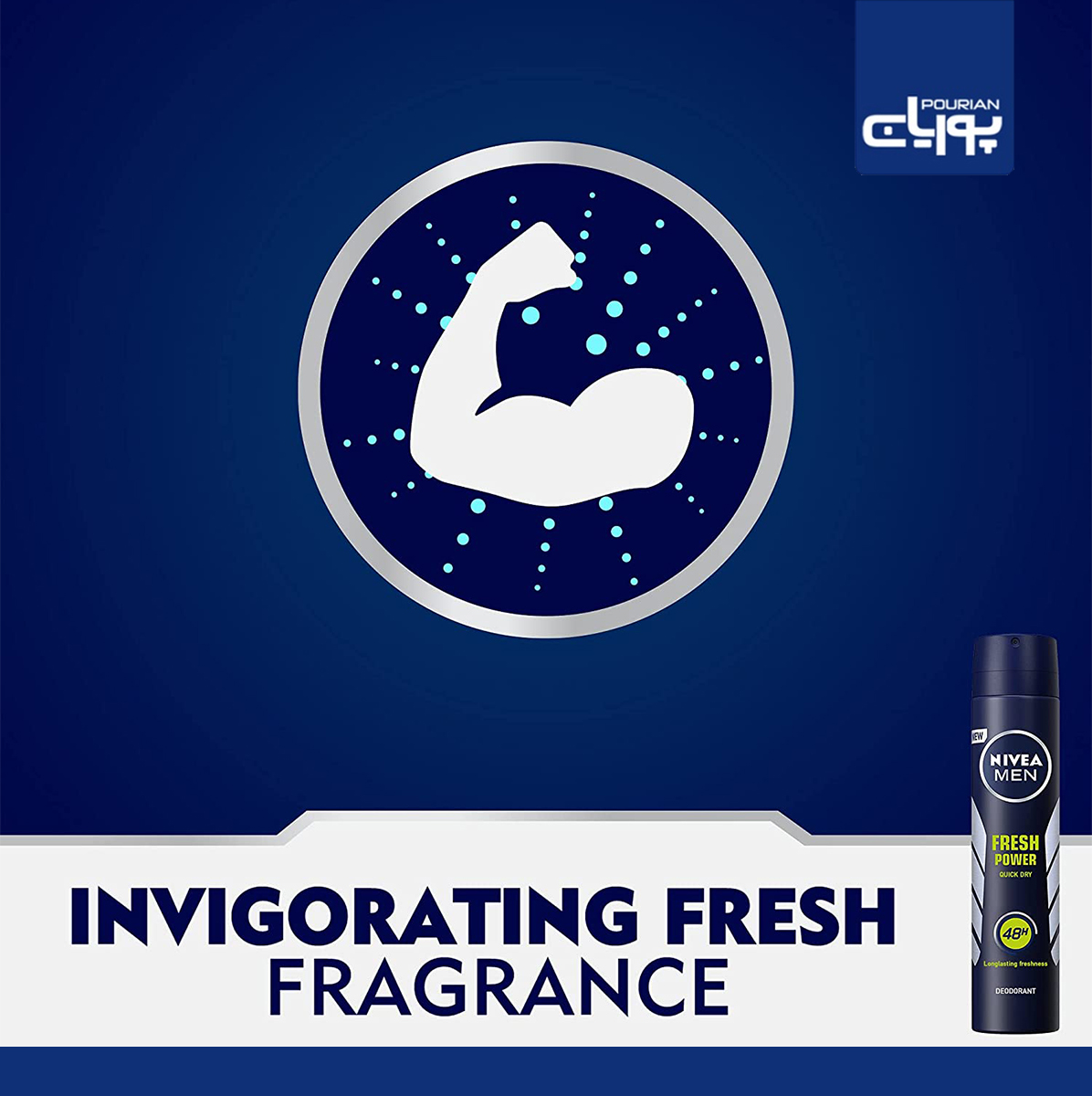 اسپری دئودورانت اکتیو فرش نیوآ حس تازگی را در تمام طول روز تضمین می کند و محافظتی طولانی مدت و مطمئن را ارائه می کند. فرمول مؤثر آن شامل عصاره طراوت بخش اقیانوس در تمام طول روز است.