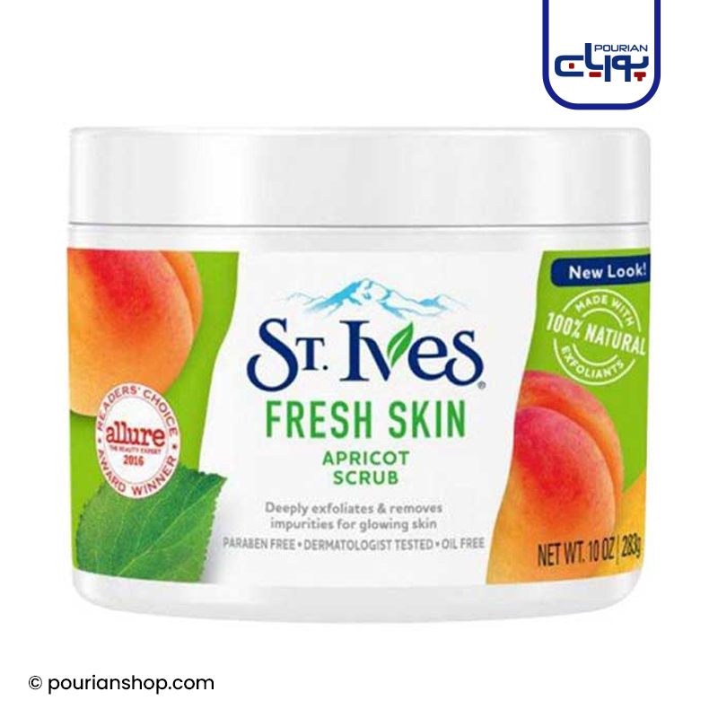 اسکراب زردآلو سینت ایوز St Ives Fresh Skin برنده جایزه متخصصین زیبایی Allure سال ۲۰۱۶ حاوی عصاره ارگانیک زردآلو، دانه زرد و پوست گردو بوده و ضمن پاکسازی پوست شفاف کننده و طراوت بخش می باشد. اسکراب ضدجوش زردآلوی سینت ایوز بدون چربی بوده و همچنین حاوی گلیسیرین جهت نرمی هر چه بیشتر پوست می باشد و برای صورت و بدن قابل استفاده است.