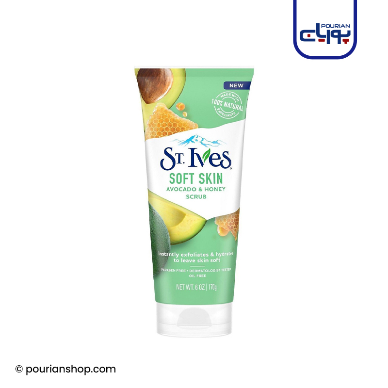 اسکراب Soft Skin سنت ایوز مناسب انواع پوست می باشد وسرشار از آووکادو بوده که دارای خاصیت بی نظیر مرطوب کننده و از خشکی پوست جلوگیری می کند،همچنین دارای عسل بوده که پوست را به خوبی تغذیه کرده و سبب سالم شدن آن می شود و ترکیب آووکادو و عسل موجود در این اسکراب، سبب نرم و لطیف شدن پوست شده و کمپلکس آن را شاداب می کند،حاوی پودر پوست گردو می باشد که منافذ را تمیز می کند،پوست گردو که در این محصول استفاده شده، به خوبی آسیاب شده، آسیبی به پوست نمی رساند و سلول های مرده پوست را از بین می برد،فاقد روغن و پارابن می باشد و کومدون زا نیست. بنابراین جوش های پوست را افزایش نمی دهد، بلکه آن ها را کم می کند و همچنین Cruelty Free بوده و تست حیوانی ندارد.