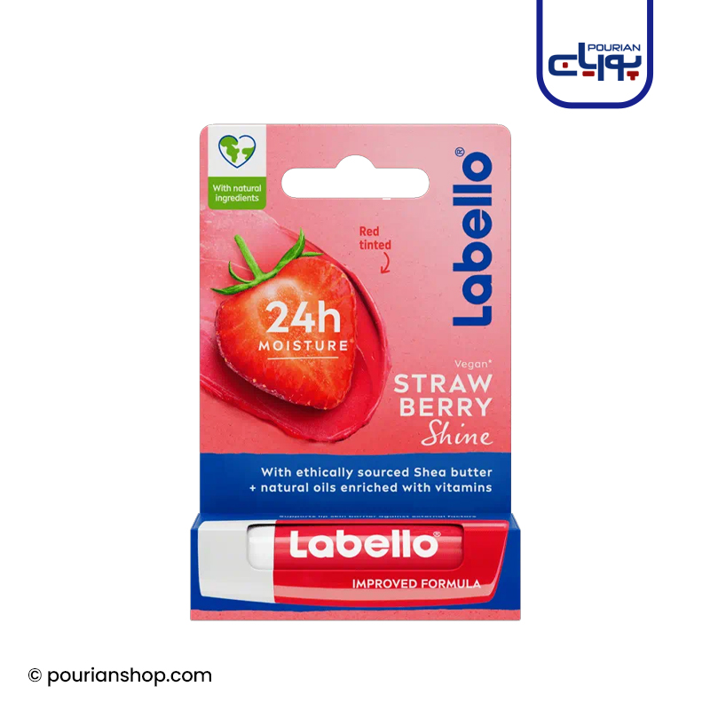 بالم مرطوب کننده لب لابلو طعم توت فرنگی Labello Strawberry Shine حاوی روغن های طبیعی، نرم کننده و مرطوب کننده طولانی مدت لب می باشد. بالم لب لابلو علاوه بر رطوبت رسانی ۲۴ ساعته نمای نهایی درخشان قرمز به همراه طعم و آرومای توت فرنگی را به لب ها هدیه می دهد.