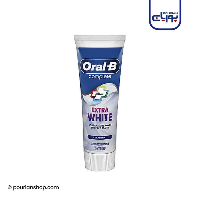 خمیردندان سفیدکننده اورال بی Oral B Complete Extra White حاوی دو نوع ماده فعال سفیدکننده جهت قدرت سفیدکنندگی دوبرابر بوده و همچنین حاوی نعناع جهت تازگی طولانی مدت تنفس می باشد.