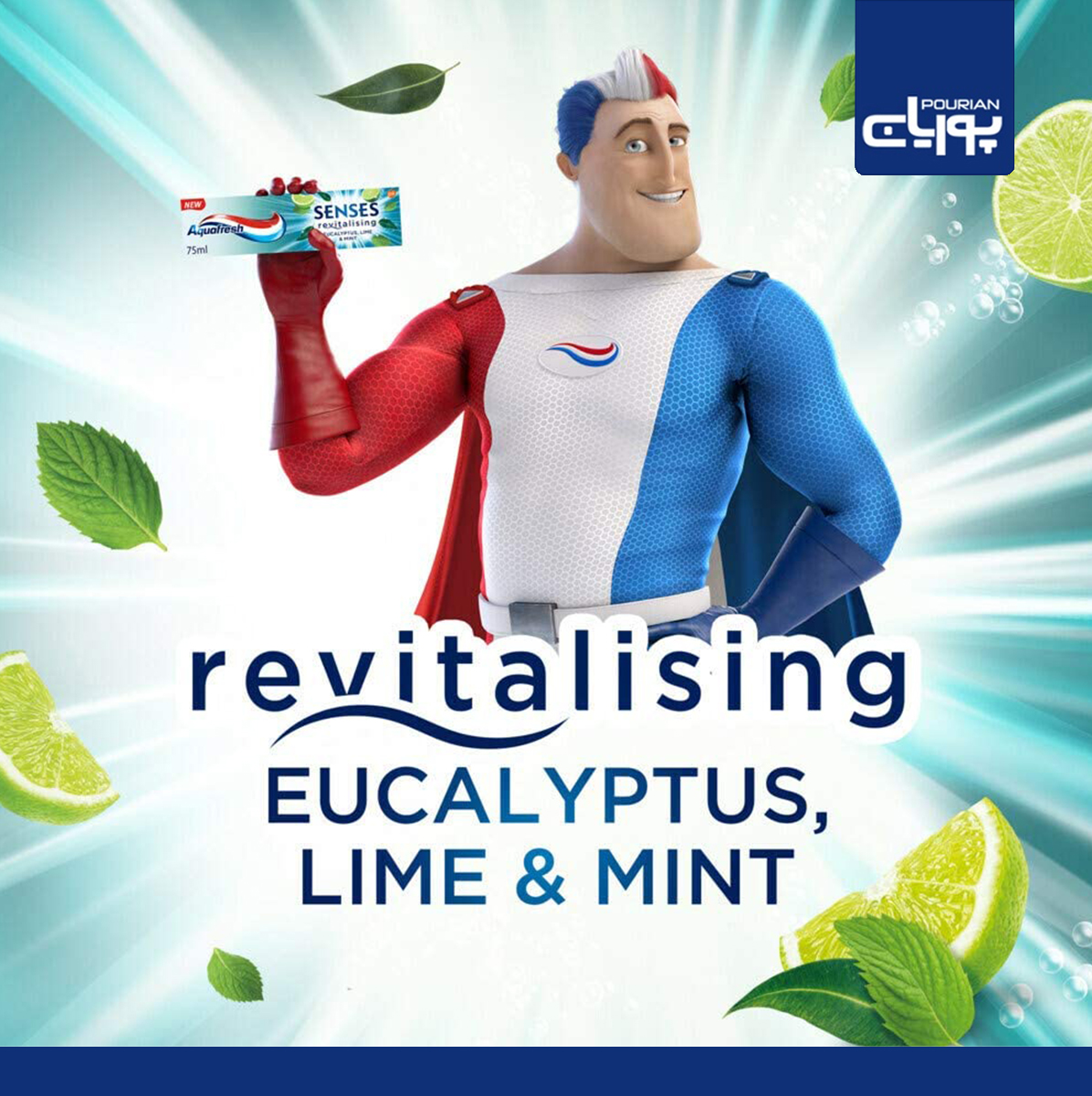 خمیر دندان آکوا فرش سنسیس با ترکیب اکالیپتوس، لیموترش و نعناع انرژی بخش Aquafresh Senses به سلامت دندانها و لثههای شما کمک می کند و این محصول با طعم های انرژی و طراوت بخش به لذت بردن شما هنگام مسواک زدن کمک میکند ، با مسواک زدن دو بار در روز به سلامت و ایمن دندان ها و لثه خود بیافزایید.