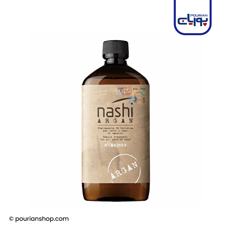 شامپو آرگان آرگان ناشی فاقد سولفات، پارابن، فسفات، سدیم کلراید مناسب برای موهای کراتینه و رنگ شده می باشد این شامپو غنی شده با روغن آرگان و بذر کتان است و ایده آل برای حفظ رطوبت مو است.
