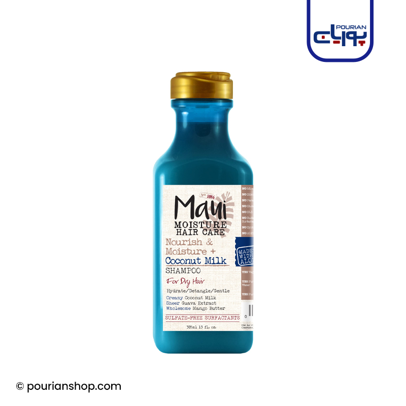 شامپو مغذی و آبرسان شیر نارگیل مائوئی مویسچر Maui Coconut Milk محصولی باکیفیت و ارگانیک و حاوی شیر نارگیل، روغن گواوا و کره انبه بوده و برای تغذیه و آبرسانی موهای خشک بسیار مناسب می باشد. شامپو شیر نارگیل مائوئی دارای فرمول سبک بوده و بدون ایجاد سنگینی و چسبندگی موها را آبرسانی کره و موهای غیر قابل مدیریت را منظم می کند.شامپو شیر نارگیل مائوئی مویسچر فاقد سولفات، سیلیکون، پارابن و گلوتن است و فرمول کاملا گیاهی و وگن دارد.