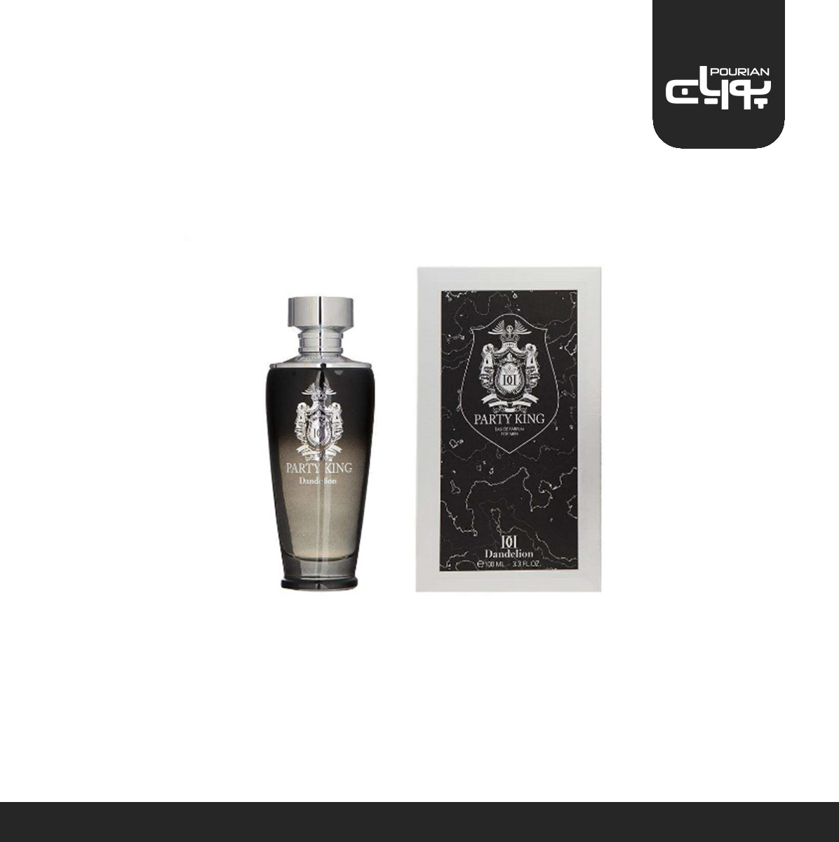 عطر ادکلن دندلاین پارتی کینگ مردانه _ Dandelion PARTY KING بسته بندی و شیشه بسیار زیبا و خاصی دارد. لگو و نقش این عطر به طوری است که به شما حس پادشاه بودن را القا میکند. رنگ شیشه مشکی و در آن نقره ای است که آن را زیباتر و شکیل تر میکند.