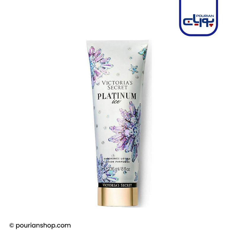 لوسیون بدن ویکتوریا سکرت پلاتینیوم آیس Platinum Ice با رایحه دلپذیر گل رز پئونی و نارگیل و تم جواهرات و سنگ های گرانبها آبرسان و رطوبت رسان ۲۴ ساعته پوست می باشد. لوسیون بدن ویکتوریا سکرت حاوی آلوئه ورا، شی باتر، روغن نارگیل، ویتامین C، ویتامین E و آنتی اکسیدان بوده و استفاده از آن علاوه بر تغذیه و آبرسانی پوست حس بسیار خوشایندی به همراه دارد.