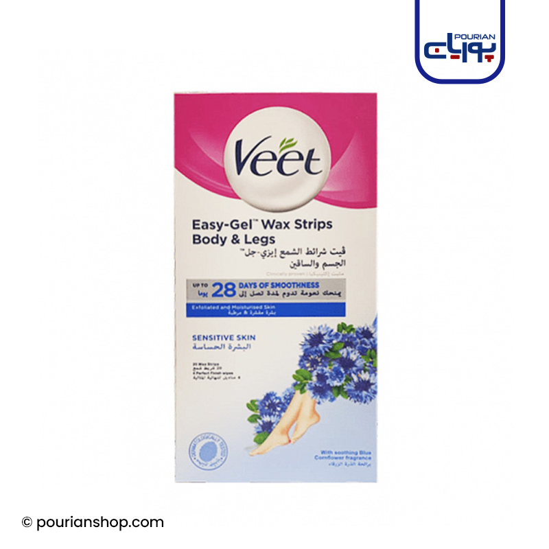 نوار موبر بدن ورقه ای ویت مخصوص پوست های حساس Veet Wax Strip Sensitive دارای فرمول جدید و حاوی روغن بادام و ویتامین E بوده و از التهاب پوست های حساس جلوگیری می کند.