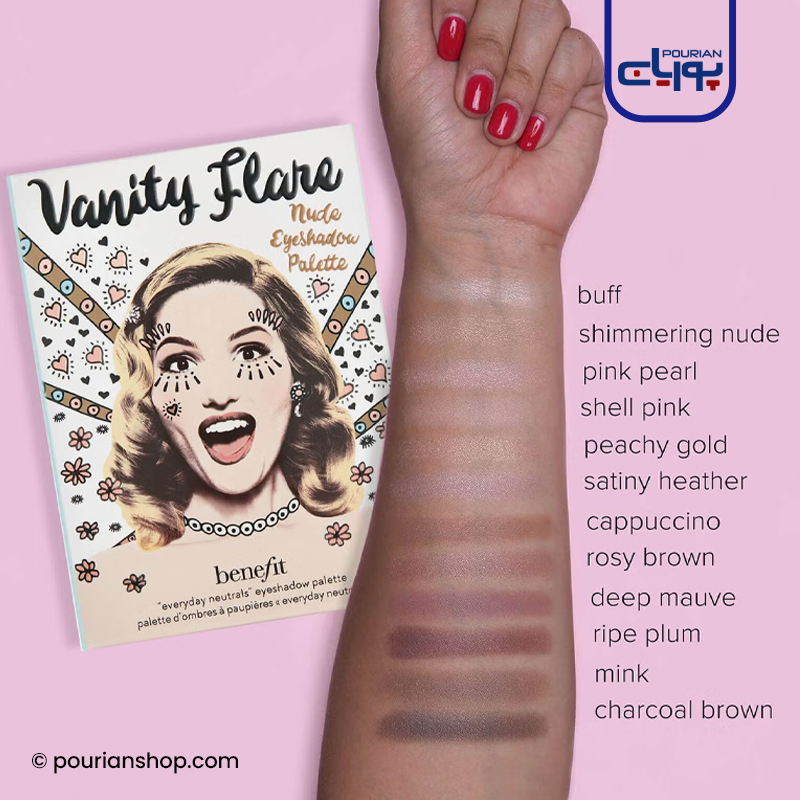 پالت سایه بنفیت کاسمتیکس ونتی فلیر نود سایههای غنی که به راحتی ترکیب و ساخته میشوند و برای ایجاد ظاهری زیبا و طبیعی از سایه چشم عالی هستند، این پالت همچنین شامل نکات و ترفندهای سودمند با مراحل استفاده از سایه چشم تولید شده، بهعلاوه یک آینه داخلی برای استفاده آرایش راحت و آسان است.