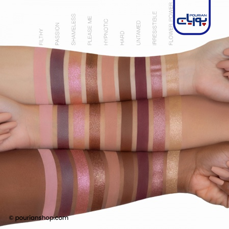 در این پالت 18 رنگ سایه با 5 نوع بافت مختلف وجود دارد.