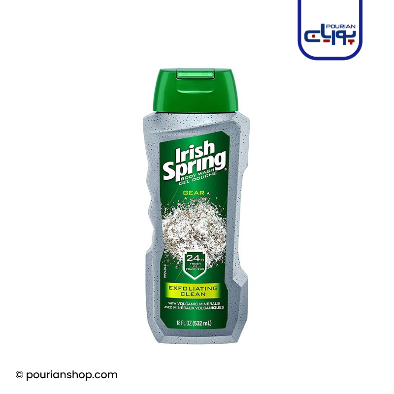 ژل دوش آقایان ایریش اسپرینگ Irish Spring Gear Exfoliating Clean محصولی بسیار باطراوت و نشاط آور بوده و حاوی مواد معدنی آتشفشانی جهت لایه برداری و پاک کنندگی عمیق پوست می باشد. ژل دوش ایریش اسپرینگ دارای تکنولوژی خنثی کننده ۲۴ ساعته بوی نامتبوع عرق می باشد و محصولی انرژی دهنده و نشاط آور در برنامه مراقبت روزانه آقایان می باشد.