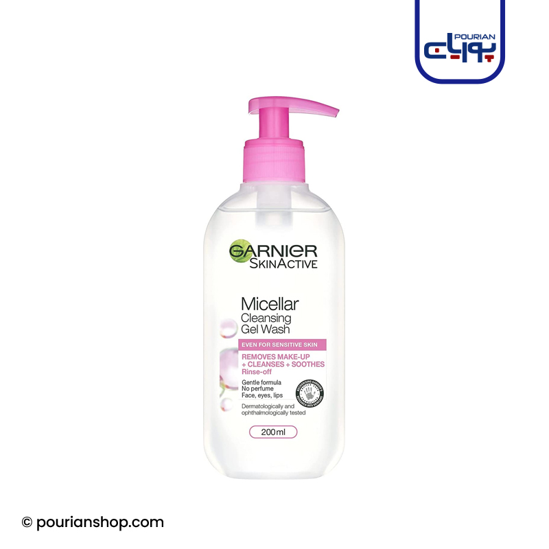 ژل شوینده پوست حساس گارنیه دارای فرمول ملایم با سه عملکرد پاک کنندگی آرایش، تمیز کنندگی و تسکین دهنده پوست صورت می باشد. این محصول حاوی مولکول های میسل است که همانند آهنربا جاذب آلودگی و ناخالصی های پوست می باشد. این فرمول دو ویژگی همزمان میسلار واتر و ژل شوینده را هم دارد و برای استفاده صورت، چشم و لب مناسب می باشد.