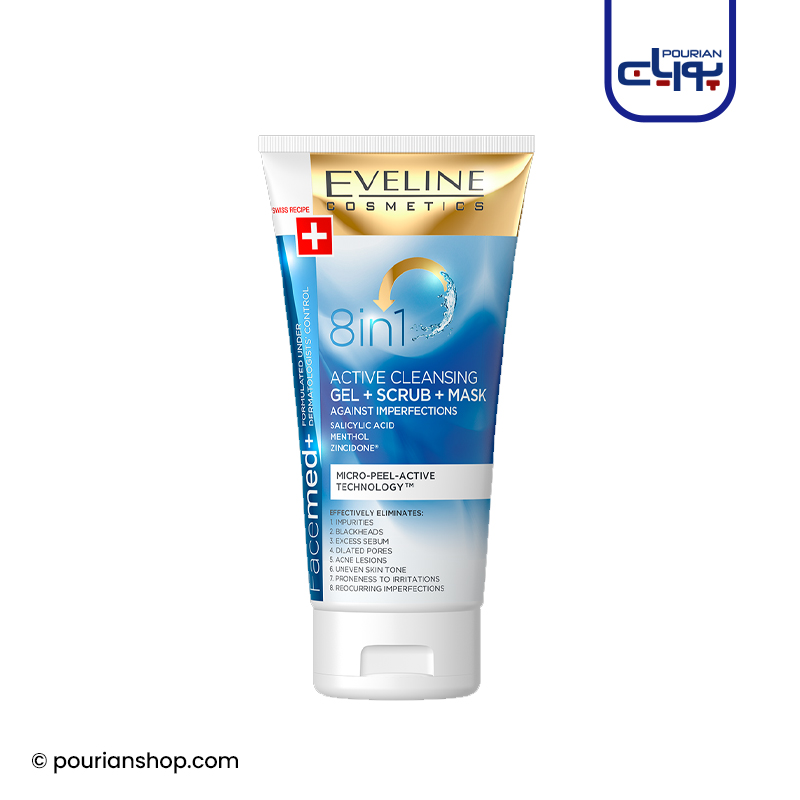 ژل پاک کننده سه کاره صورت اولاین Eveline 8in1 حاوی میکرو ذرات فعال لایه بردار با عملکرد ۸ گانه و مناسب برای استفاده روزانه می باشد. پاک کننده صورت اولاین قابل استفاده به صورت ژل شوینده صورت، اسکراب و ماسک سم زدا و احیا کننده پوست است که برای برطرف کردن ۸ مشکل رایج پوست از جمله ناخالصی و آلودگی، جوش های سرسیاه، چربی اضافی سبوم، منافذ باز، آکنه، کدر شدن پوست، حساسیت و بازگشت جوش طراحی شده است. پاک کننده صورت اولاین حاوی سالیسیلیک اسید به عنوان آنتی باکتریال و ضدجوش، زینک جهت تصفیه و خالص سازی پوست و عصاره نعناع جهت شادابی و خنک کنندگی می باشد.
