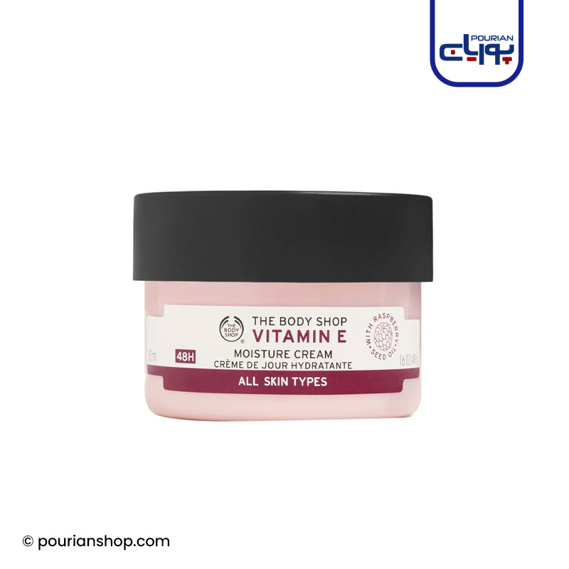 کرم مرطوب کننده و آبرسان ۴۸ ساعته ویتامین E بادی شاپ یک مرطوب کننده غنی شده با ویتامین E است . این کرم بدون ایجاد چربی و سنگینی بر روی پوست رطوبت مورد نیاز سلول ها را تامین کرده و پوست های خشک و دهیدراته را به مدت ۴۸ساعت آبرسانی کرده و کمک می کند رطوبت در پوست شما حفظ شود و باعث افزایش نرمی و لطافت پوست شما می شود. هیالورونیک اسید موجود در این کرم پوست را به صورت عمقی آبرسانی کرده بافت آسیب دیده پوست را ترمیم و احیا می کند. فرمولاسیون این محصول ترکیبی است از هیالورونیک اسید،روغن گندم، روغن شی باتر از کشور غنا، آلوئه ورا از کشور مکزیک و روغن زیتون و سرشار از ویتامین E است. ویتامین E مواد مغذی مورد نیاز بافت پوست را تامین کرده و به علت داشتن خاصیت آنتی اکسیدان رادیکال های آزاد سطح پوست را خنثی می کند. این کرم حاوی گلیسیرین جهت آبرسانی بیشتر پوست و حفظ سد طبیعی پوست است.همچنین این کرم لایه ها و سلول های مرده پوست را ازبین میبرد زیرا حاوی اسید سیتریک میباشد. ساختار آن فاقد چربی و سبک بوده و برای انواع پوست مناسب است.