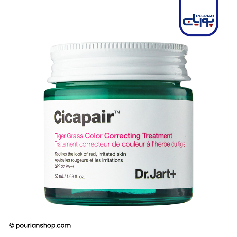 کرم درمان و اصلاح کننده رنگ پوست سیکاپیر تایگر گرس دکتر جارت با داشتن تناژ سبز، قرمزی و سوزش پوست را تسکین می دهد و رنگ پوست را یکنواخت می کند. این کرم سرشار از ترکیبات آرام کننده و تسکین دهنده پوست از جمله سنتلا، نیاسینامید و پانتنول است، که پوست های حساس و قرمز و حتی دارای رزاسه به راحتی از این کرم می توانند هم به طور تنها هم به عنوان پایه و زیرساز میکاپ استفاده کنند. کرم ترمیم کننده سیکاپیر دکتر جارت دارای SPF22 است و به عنوان ضدآفتاب سبک قابل استفاده می باشد.