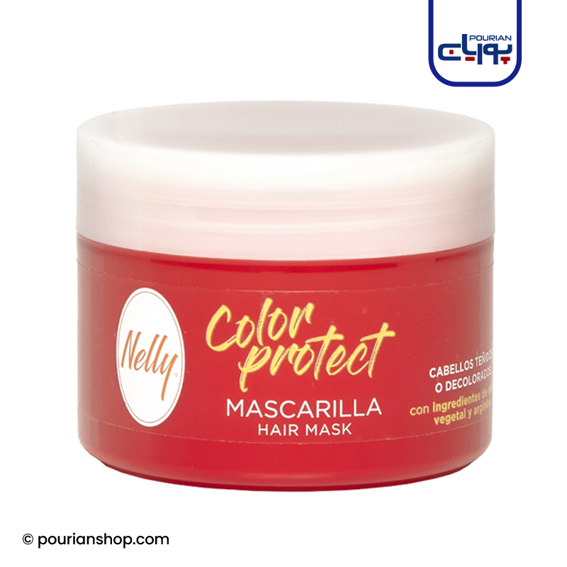 ماسک موهای رنگ شده کالر پروتکت نلی اسپانیایی حاوی ترکیبات گیاهی است، که به افزایش ماندگاری رنگ مو و نرم و درخشان شدن موهای رنگ شده یا دکلره شده کمک می کند. این ماسک با بافتی کرمی و غنی، فرموله شده است که باعث نرم و ابریشمی شدن موهای رنگ شده می شود. آرژنین موجود در ترکیبات این ماسک مو به تقویت فولیکول های مو کمک می کند و از رنگ مو در برابر شستشو و عوامل خارجی آسیب زا محافظت می کند. همچنین سرشار از مواد نرم کننده مو است که ظاهر مو را بهبود می بخشد و شانه کردن را آسان می کند و در نتیجه موهای مرطوب و محافظت شده و درخشانی را اهدا می کند.