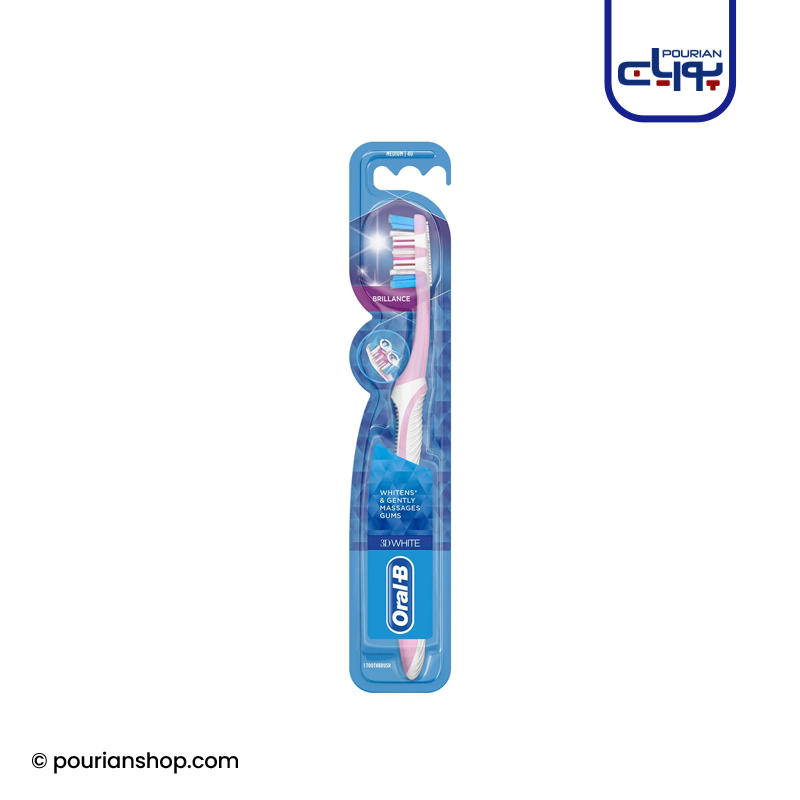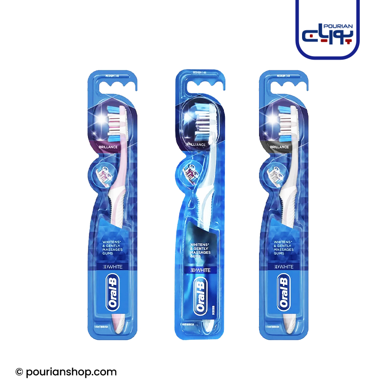 مسواک دستی برلیانس اورال بی برای کمک به سفیدن شدن دندان ها و مراقبت از لثه از طریق ماساژ ملایم لثه ها طراحی شده است. این مسواک دارای یک فنجانی کوچک در بین سری مسواک دارد که با از بین بردن لکه های سطحی به سفیدی و تمیز سدن بهتر دندان های کمک می مند.