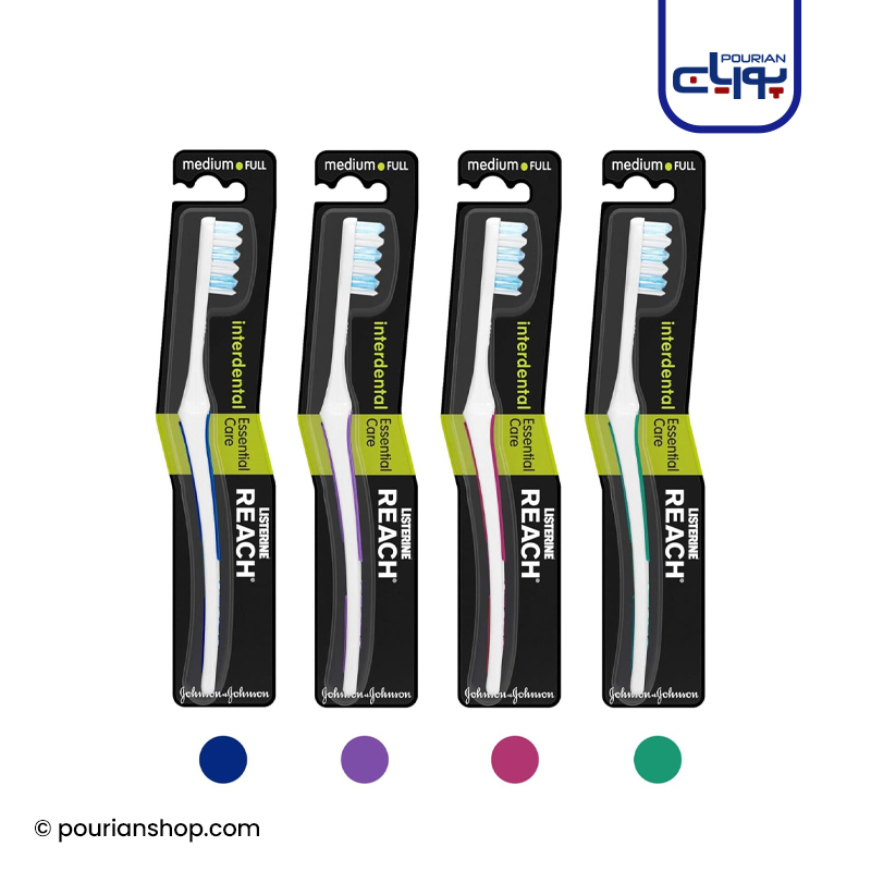 مسواک دستی لیسترین ریچ اینتردنتال به طور ویژه با موهای زاویه دار چند سطحی ساخته شده است، تا بین دندان ها و انتهای دهان را به طور کامل تمیز کند.